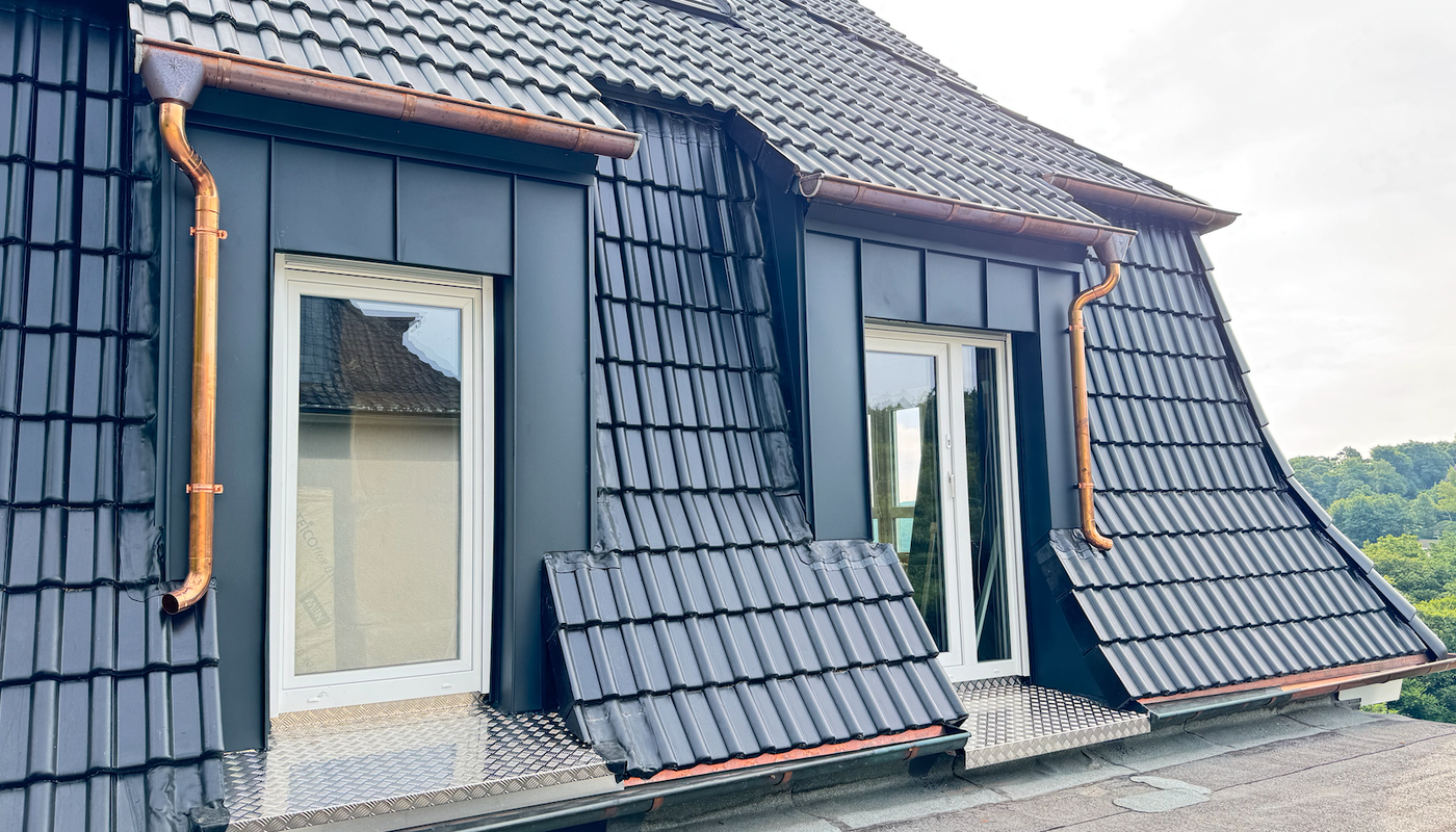 Wir sind nicht nur Dachdecker, sondern führen auch alle nötigen Metallarbeiten auf dem Dach, im Volksmund auch „Klempnerarbeiten“, durch.